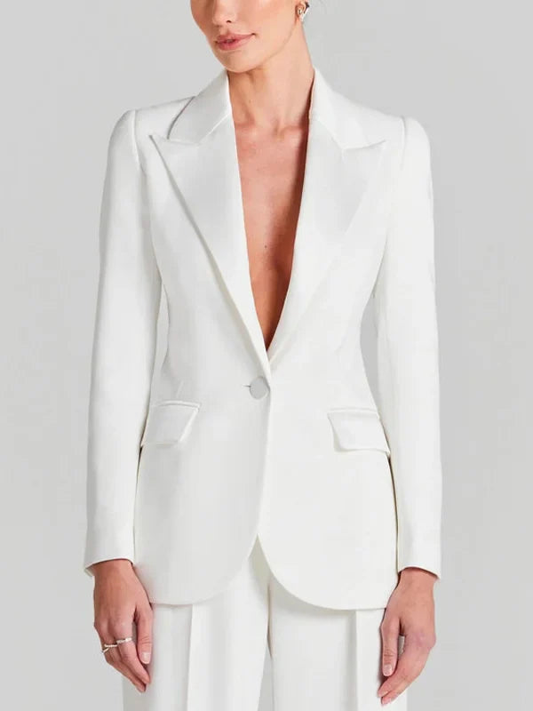 Sofia | Blazer Bianco a Un Bottone con Collo Pieghettato